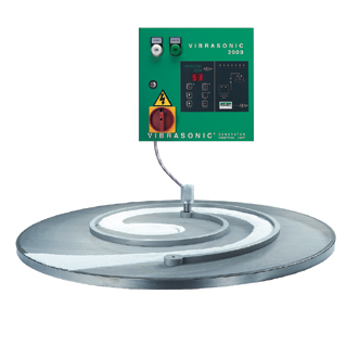 The new Vibrasonic Spiroscreen“ uses a spiral shaped ultrasonic distribution element to provide maximum control of the powder on the mesh screen thereby increasing its effectiveness in separating out the different sized particles in powders. This element is driven by a finely tuned Russell Finex Vibrasonic control unit incorporating technology proven over 30 years. The combination of out of balance weight settings, the shape of the spiral and the vibration activity guides the product to give full mesh usage. The element provides the opportunity to use larger screens with a single probe while keeping even activity levels over the whole mesh surface. As a deblinding aid it covers more mesh surface allowing maximum screen coverage.