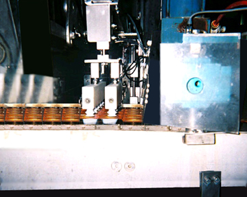 This checkweighing system uses a unique suction powered lifter and load cell element that checkweighs a row of two or more than five packets at a time. The precision scale is capable of weighing about 60 rows of five packets a minute or two rows of five in each carrier for 120 total carrier packets weighed per minute.