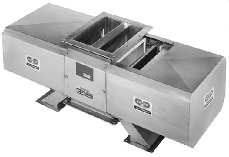 A stripper plate stops as the magnets continue to retract, separating the magnets from the stripper plate. Tramp metal is safely discarded into collection trays. This style is also available in EZ CLEAN (not shown).