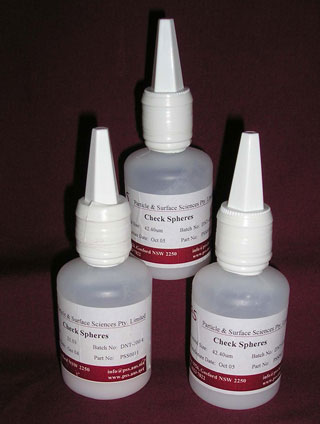 The Check Spheres are supplied at a 1% concentration, which is considerably higher than most certified materials thus the amount required to carry out the check is less and substantially more checks can be carried out.