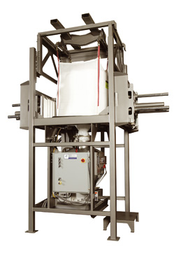 This Bulk Bag Unloader was designed with NBE's Funnel-Flow™ bulk bag hanger bar Massage Paddles, Receiving Hopper and Deblocking Rams for optimal productivity and safety.