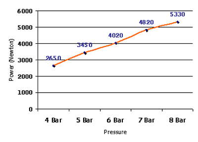 The chart below shows the Vortex Blastair with 50 liters tank capacity indicative power in Newton.