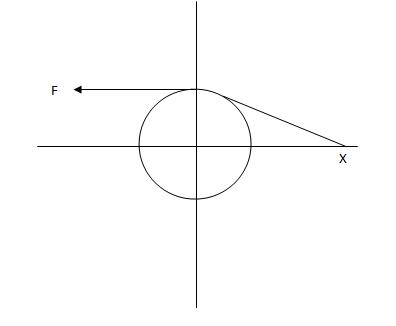Consider the example in the figure. I am trying to find the components of F (Fx and Fy) at an unknown point X. Is it ok to say Fx=Fcos(a) where a is the angle at point X? Or should I take into consideration the forces at the part that touches the pulley?