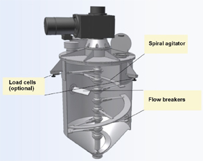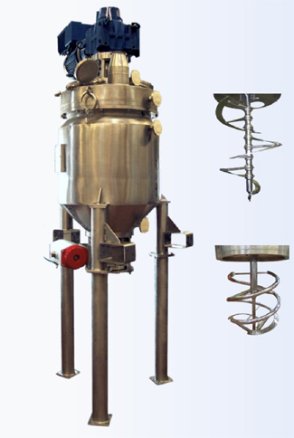 The Conical Mixer has a spiral agitator for efficient but gentle mixing