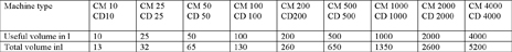 The Conical Mixers and the Conical Driers are available in following sizes: