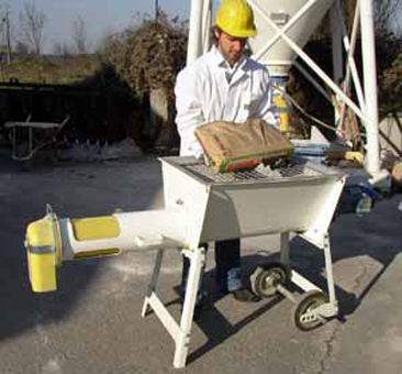 BLOBOY® is an independent pneumatic conveying system, suitable for conveying premixed building materials, stored inside gravity-fed silos to the mixer (or plaster sprayer) situated nearby in the application area. Once started up, the system can work independently, always ensuring supply of material to the mixer (plaster sprayer), limiting the labour necessary at the jobsite to the minimum thanks to the electric panel especially designed to power and interact with a level indicator fitted on the hood of the mixer (or plaster sprayer) hopper.