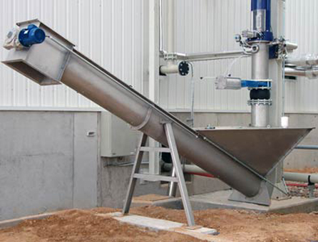 The solid aggregate particles (sand and gravel) having a particle size larger than 0.3mm (0.01 in) are separated from the wastewater by an inclined heavy-duty screw.