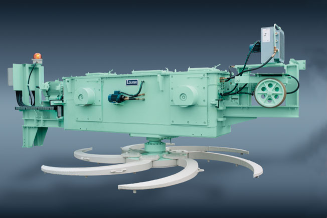 LOUISE-Bunkerentleerungswagen sichern den zuverlässigen Austrag von unterschiedlichsten Schüttgütern wie Kalkstein, Mergel, Dolomitgestein, Natur- und REA-Gips, Kohle, Erzen oder Additiven aus Silos, Bunkern oder Halden. Der Bunkerentleerungswagen wird in Zementwerken vor allem für den Austrag von Rohmaterial eingesetzt. Ausgerüstet mit einer elektrischen Steuerung bewegt sich der Bunkerentleerungswagen innerhalb des Abzugskanals auf Schienen in beide Fahrtrichtungen. Mit den logarithmisch geformten Räumarmen wird selbst Schüttgut mit schlechten Fließeigenschaften gleichmäßig abgezogen. Der Bunkerentleerungswagen passt sich unterschiedlichsten Anwendungen an und wird je nach Einsatzfall individuell als Block- oder Flachbau-Modell ausgelegt. Das bei Dyckerhoff zum Einsatz kommende Flachbau-Modell ist einsetzbar als einseitiges Räumgerät, einseitig oder beidseitig schwenkbar mit Schnellgang für den Fahrantrieb. Der Bunkerentleerungswagen fährt auf der Gerüstkonstruktion des Abzugs-Gurtförderers den Bunkertisch entlang. Bei Einsatz der schwenkbaren Version fährt der Bunkerentleerungswagen zu vorgewählten Bereichen und räumt das Schüttgut ab.