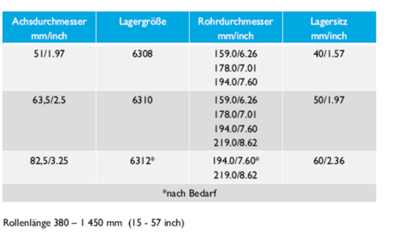 Die bauteiloptimierte, patentrechtlich geschützte Tragrolle HM150 besteht im Wesentlichen aus dem belastungsgerechten und verformungsreduzierten Tragrollenmantel (flow formed shell), den durch Umformung hergestellten Lagerhaltern (end-formed), der geschmiedeten Hohlachse sowie den neuentwickelten hocheffektiven Labyrinthabdichtungen.