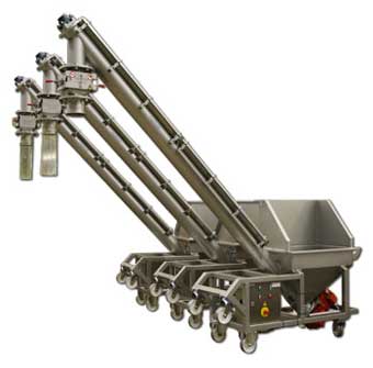 Für Koninklijke Verkade aus Zaandam hat Van Beek drei mobile Hochförderschnecken für die sichere und effiziente Zufügung von Zimtzucker und Zuckerrübensirup-Plättchen zum Produktionsprozess von Sultana Keksen entworfen.