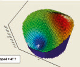 The MV model of the 3DLevelScanner was mounted on a 100 foot tall, 27 foot diameter, carbon steel silo containing granular rice. The device was mounted on an existing flange using the BinMaster adapter plate and mounted one-sixth in from the silo diameter. The silo is a center fill, center discharge configuration and the internal bin environment is very dusty. However, the low frequency acoustics-based technology was able to penetrate the dust. Unlike the single-point measurement radar devices, the 3DLevelScanner MV model samples multiple measurements within a 70 degree beam angle inside the bin. Allowing material to settle in the bin and then visually mapping the contents helped the customer more closely manage inventory and schedule refilling at an optimal time and provided a more accurate estimate of bin volume. Based upon the success of the first silo, 27 additional units were installed at the location.