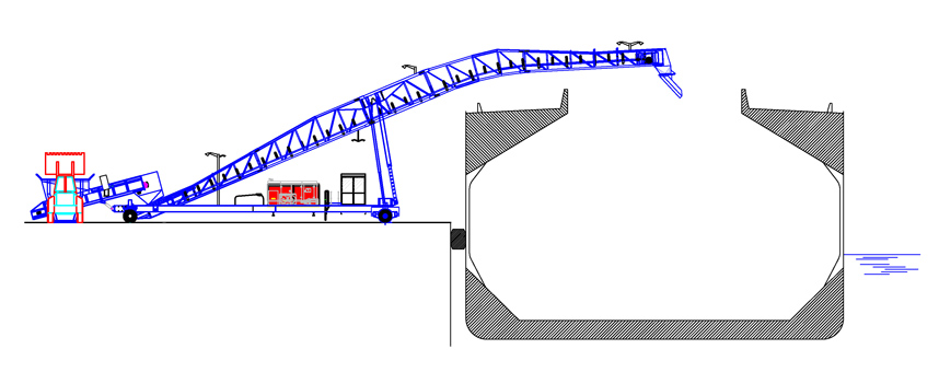 The 45 metre boom Mobile B&W Shiploader will be fed by wheel loaders, tipping material into a chassis mounted Kleenline belt feeder, enabling peak loading rates of 2000 tonnes per hour and average rates of 1700 tonnes per hour into Panamax size vessels. Maximum mobility is available through the provision of B&Ws latest ‘New Generation’ Inline and Parallel wheel travel system and an on-board diesel generator set. Environmental considerations are paramount with full length boom covers and water spray dust suppression fitted to both the feeder and at transfer points.