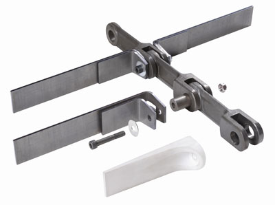 The Bolt ‘n’ Go Flight System is the revolutionary assembly method for Drop Forged Conveyor Chain. This new and simple method of assembling chain links and attaching chain flights uses a standard bolt and nut with a high strength hollow pin. There are no circlips to become loose and there is no intricate assembly. There is no welding required on the flights, no need to remove chain from the conveyor for installation, and no issues with strength. Just bolt the links and the flights together. It’s easy, simple and reliable!