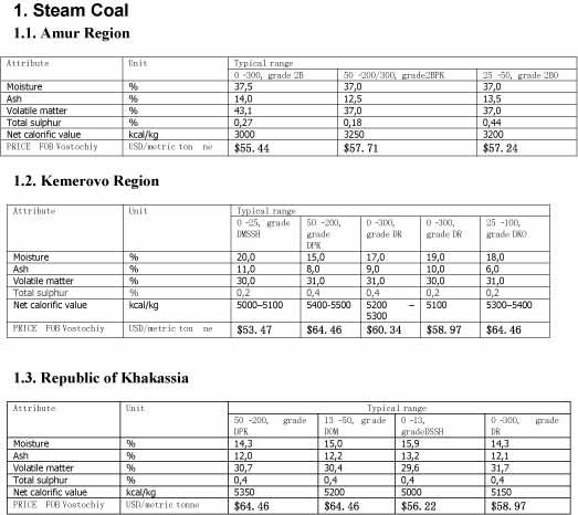 We're the selling representative of Russian coal covering the Asian markets and will like to introduce to you the high quality products as below.