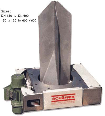 The units are suitable for distributing both fine and coarse materials. However, with feed particle sizes above 5 mm, wear reasons make it necessary to avoid the change-over against the product stream wherever possible.