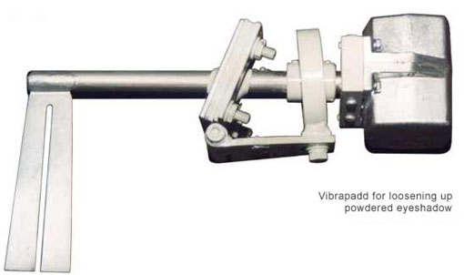 The Vibrapadd is suitable for emptying bulk materials sized between 0.5 µm and approx. 5 mm with bulk densities up to approx. 1.5 out of small containers. It is absolutely ideal for those applications where bulk materials must be discharged as uniformly as possible from small outlet ports. Vibrapadd for loosening up powdered eyeshadow.