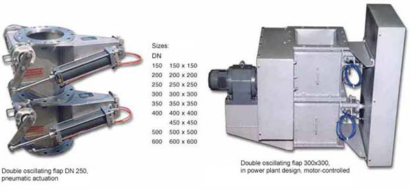 Our lift-locks and double oscillating flaps are discharge elements suitable for continuous operation (double oscillating flaps) or intermittent operation (lift-locks), and are used to discharge powdery or finely grained products from filters and cyclones, etc.