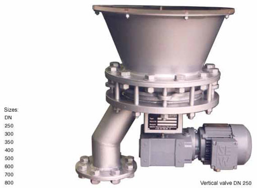 Vertical valves are continuous-mode discharge and metering units for powders and fine-grained bulk materials. They operate on the principle of a volumetric metering unit. The amount fed is directly dependent on the bulk density of the material upstream of the valve. Activation with scrapers ensures a high and uniform filling rate.