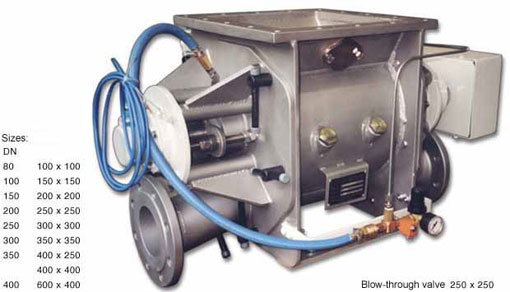 Dependent on their design, blow-through valves are used to feed powders and fine-grained bulk materials into pneumatic feed lines. The bulk material must be dry with good conveying and flow properties. Because the rotor is precision-finished to the correct tolerances, our blow-through valves afford the maximum possible sealing integrity. Gap leakage caused by running clearance and wear, however, is possible.