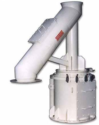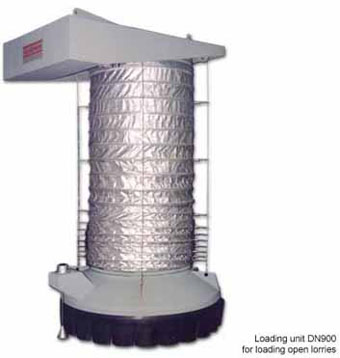 Because the entire loading assembly is supported by the top flange fitting, trouble-free installation is guaranteed. No additional consoles, brackets or deflection rollers necessary. Including connection for dedusting equipment. Design with integrated filter also available upon request. Loading unit DN900 for loading open lorries.