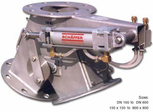 These new and inexpensive diverter valves are smooth and without dead zones in the area where the bulk material passes through, and have only very few wear parts that can be exchanged without having to remove the unit from the entire system. The valves are pressure-tight to + 0.4 bar.
