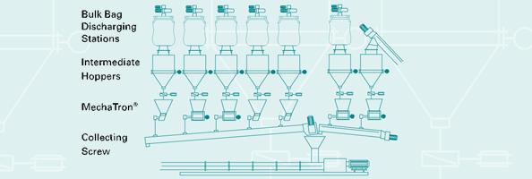 The tried and tested MechaTron® feeder from Schenck Process, which enables accurate real-time adjustments to be undertaken with modular components, is the perfectly adaptable solution. The designs of the feed hoppers and discharge tools are matched to a wide range of bulk materials and are complemented by a mechanism, supported perfectly by the DISOCONT® feeder control unit. The solution allows a series of individual feed parameters to be assigned to any bulk material.