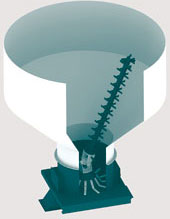 The FloMaster Circular Bin Discharger (CBD) is a well proven and established positive discharge aid for hoppers and silos where the material is to be handled has characteristics which make it difficult to discharge or control. A rotating arch breaker arm travels around the hopper bottom section of the silo breaking any bridge of material which may have formed. This ensures a flow of material to the discharger which can be supplied as a single, two or three stage unit to suit the characteristics of the material to be handled and the throughputs required. The standard range comprises of two sizes: 800mm and 1000mm diameter. Besides functioning as a bin discharger, the FloMaster can be used to maintain a head of normalised material in the outlet chute, thus assisting the accuracy of subsequent metering or weighing equipment. Material in excess of the take away rate is re-cycled. The FloMaster is driven by a single drive controlling the rotation of both the discharger and arch breaker arm. Actual drive arrangements vary according to the application or customer requirements.