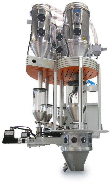 Für die Fertigung der Förder-, Dosier- und Mischsysteme greift der Maschinenbauer zu etwa 70 Prozent auf Zukaufteile zurück. Die restlichen 30 Prozent entstehen in Eigenproduktion. Der Zusammenbau von Komponenten, der Bau von Steuerungsanlagen sowie die Entwicklung und Programmierung der jeweiligen Software zählt zu den Kernkompetenzen von FDM. Vollmar: „Auch bei komplexen Problemen sind wir in der Lage, mit innovativen Konzepten kostengünstige Lösungen anzubieten.“ Auf diese Weise entstehen am Standort Königswinter nicht nur preiswerte volumetrische Dosierlösungen für geringere Granulatdurchsätze oder Systeme für die gravimetrische Dosierung von fließenden Schüttgütern, sondern auch hochkomplexe Dosierungen für bis zu 12 Komponenten. Ausgefeilte technische Feinheiten wie Antriebe mittels Servomotoren mit CAN- oder Profibus-Ansteuerung, digitale Messwertaufnehmer, automatische Schneckengrößenerkennung oder Schneckenhülsenarretierungen sind bei FDM eine Selbstverständlichkeit. Genauso wie die Tatsache, dass die in Königswinter entwickelten Saug-, Druck- und Vakuumfördersysteme (mit Durchsatzkapazitäten von 1 bis 20.000 kg/h) sämtlich vollautomatisch arbeiten. Sendegefäße mit oder ohne wechselbare Filter, modulares Design der Gehäuse oder eine Schnellverriegelung für die rasche Reinigung sind nur einige der Details, die beim Kunststoffverarbeiter letztlich für problemlose Abläufe sorgen.