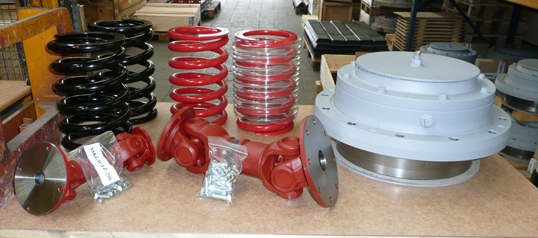 Abb 3: Weitere Ersatz- und Verschleissteile (Druckfedern, Kardangelenkwellen und Austauschlagersatz) für GfA- bzw. Svedala-Siebmaschinen