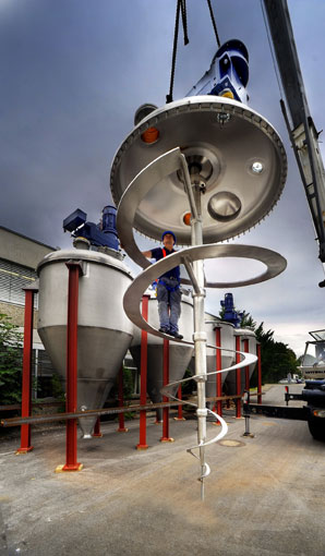 Abb. 3: Optimierte Engineering-Dienstleistungen: EKATO Wendelrührer für vertikale Schüttguttrockner