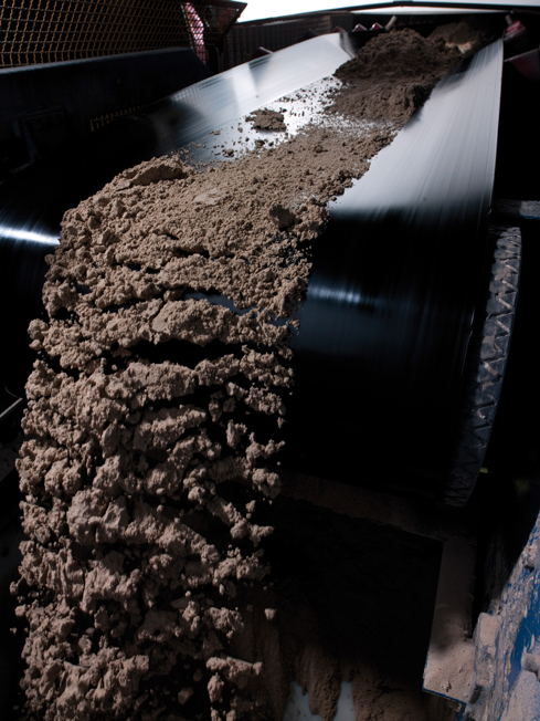 Thanks to its special surface properties, ContiClean® A-H does not become soiled even when handling ultra-sticky materials like clay and gypsum (Photo: ContiTech).