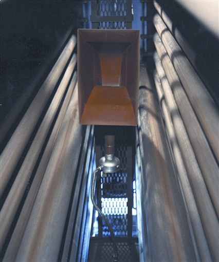 Photo: Acoustic cleaner in reverse air baghouse (hung under walkway)