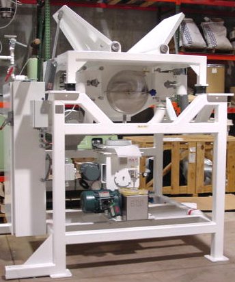 HAF Equipment, Inc Bulk Bag Unloaders feature a compant integrated continuous clean pulse jet dust collector. A high volume fans draws clean air in through operator access door when open effectively keeping dust from operator. All collected dust is contained within glove box of unloader. Two cartridge filters are quickly accessed through two seperate clean air plenums making filter change out quick and easy. Unloaders are also availble with combination vibrated hopper and bag massager option. Robust oversized frame stands up to harsh duty. Suitable for food, chemical, dairy or plastics industry.