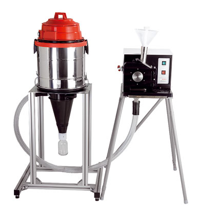 Available only with FRITSCH Cutting Mills: The patented FRITSCH sample exhauster with Cyclone separator with its based on negative pressure powerful vacuum function, ensures a simple feeding, fast throughput and a good cooling, effectively prevents sample material from escaping during feeding and unlocks up new possibilities in the processing of heterogeneous mixtures of materials, like for example derived fuels in the cement industry.