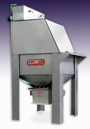 The DELUMPER crusher reduces the lumps and agglomerates to a free flowing state with a positive, one pass crushing action. without over-grind or heat rise. These units are supplied with heavy stainless steel body construction, smooth interior finish, precision operation, 5 HP motor and either a direct or belt drive