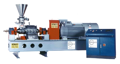 The GELIMAT® technology provides for an extremely efficient mixing/compounding process. The GELIMAT® thermokinetic principle reduces compounding time to a matter of seconds. Compounded material is ejected automatically by an electronic temperature sensor through a discharge door. The ejected material can then be fed into a melt pump, a short barrel extruder, calender, molding system or any other shaping device. The entire system is coupled to advanced process controls that allow the user to change any or all process parameters with the touch of a finger. The process control system also logs and graphically displays the actual process parameters as they occur.