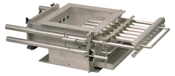 The CE certification pertains to Bunting® standard HF Series Mild Steel Drawer Magnets, HFS Stainless Steel Drawer Magnets, Manual Self-Cleaning HF Drawer Magnets and the Pneumatic Self-Cleaning HF Drawer Magnets. All Bunting HF Series Drawer Magnets are equipped with powerful magnetic cartridges to handle a wide range of separation tasks in mechanical and gravity flow applications.