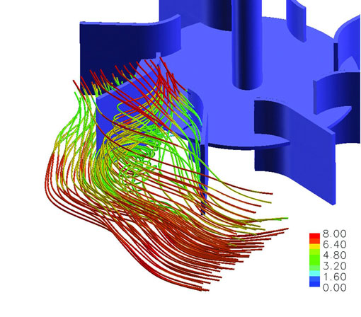 Figure: EKATO’ s new impeller EPOX-R with streamlined blades creates less vortices with reduced erosive wear