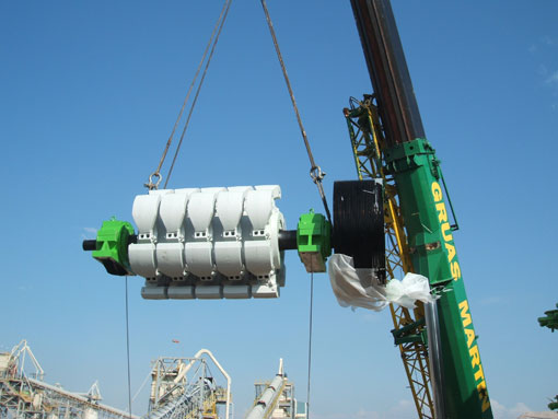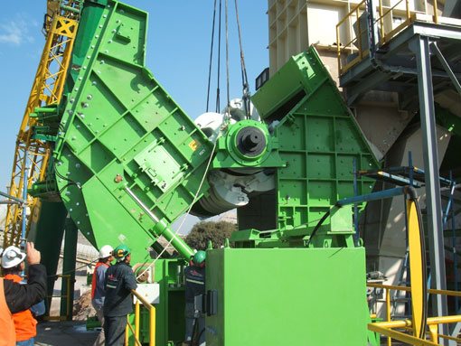 The final component to be delivered ahead of time was the rugged GSK rotor, which had to be lowered by crane into the crusher (Figs. 3-6). As soon as it was installed, the plant was put into operation. Thanks to all the effort put into the undertaking, not only was the plant delivered as promised, but also ready for operation much earlier than anticipated.