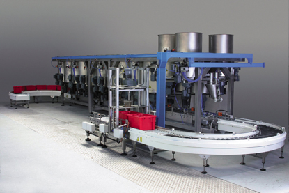 Each container is automatically labelled, the data about its contents are transmitted to the control system for traceability reasons.