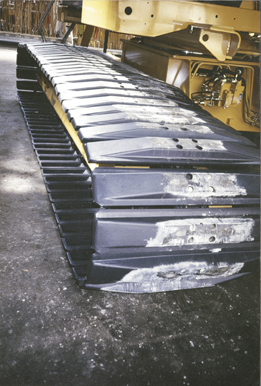 Nylatrack track plates are cast from a specially modified nylon and can be fitted on various kinds of machines operating on all types of surface. On paved roads, they cause no damage, and on soft ground, even marsh, they do not sink. Compared with steel plates, Nylatrack track plates are highly resistant to wear and corrosion, and light in weight – up to 80% lighter, saving as much as 2500 kg per machine. Because of the flexibility of track plates, vibrations are absorbed and the noise of the undercarriage is muffled. The bending force is absorbed so that broken chains are no longer a problem.