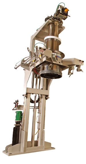 NBE’s cantilevered Bulk Bag Filler features a dual concentric tube fill head design that includes quick release knobs for easy cleaning of the product feed tube. The outer tube includes a replaceable black EPDM inflatable bladder seal to ensure dust free operation and is automatically deflated when the fill cycle has completed. The rear bag support hooks traverse forward to the front of the machine for ease of operator interface while hanging bags to be filled. The uprights feature 304 solid stainless steel track-bars which eliminate mechanical play when hydraulically raising and lowering the cantilevered fill head. The touch screen operator interface allows the operator to select from a menu of bag sizes and material specifications that optimizes the throughput of the bag filling process.