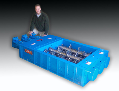 This unit is a DELUMPER Model DC4240HD with a 42" x 40" infeed opening. The HD is available in single, double and triple shaft versions to handle a wide variety of capacities. Larger and smaller units are available.