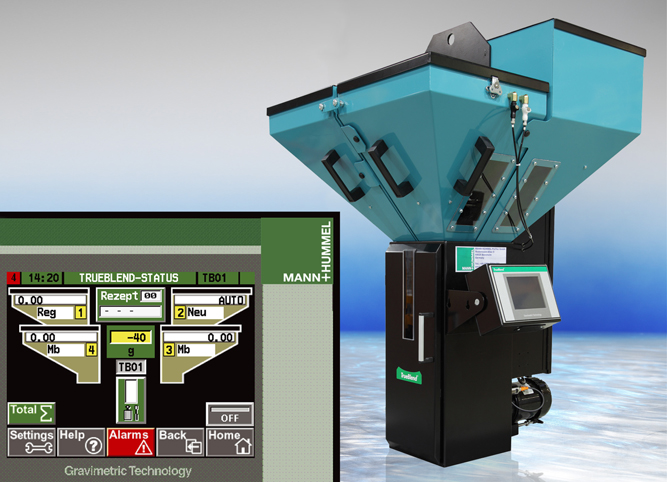 MANN+HUMMEL ProTec is now offering the TrueBlendTM TB gravimetric batch dosing system, first showcased to the public at the FAKUMA 2009, as a complete series. This range of dosing and mixing systems for treating multi-component mixtures has a total of eight sizes for throughputs of up to approx. 5,400 kg/h.