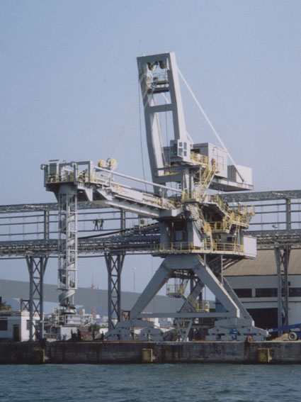 TAIM WESER’s more recent projects in terms of the installation of loaders at port terminals include supplying a self-propelled mobile loader on wheels, with a 2,500 t/h capacity, at San Nicols Port (Argentina), for the company RIO TINTO last year. Another notable example is the supply of a grab unloader for the TPS coal port terminal at Tarragona port. This unloader, weighing 1,500 tons and with a 2,500 t/h unloading capacity, feeds a coal depot, with turnover in the region of 140,000t/week. This facility is part of a large range of machinery that the company supplied in full a few years ago. It comprises a coal conveyor system from the dock to a storage plant and ship loading area using 12 conveyor belts, 1 stacker machine, 2 trippers and 1 ship loader.