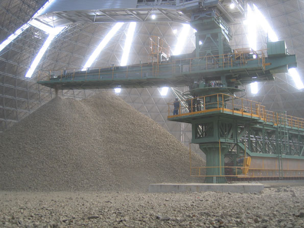 Components for clay unit are a crusher (120 t/h), a stacker (120 t/h) and a Bel S reclaimer (100 t/h); for limestone unit: a stacker (700 t/h) and a BEL S reclaimer (300 t/h).