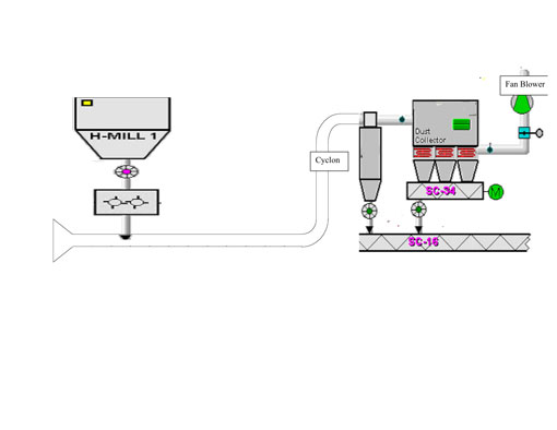 what the cyclone design, dust collector with bag filter and the fan requirement?