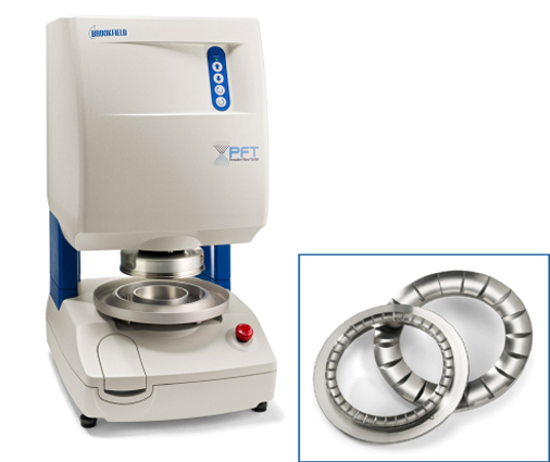 The Brookfield PFT Powder Flow Tester provides quick and easy analysis of powder flow behavior in industrial processing equipment. The PFT allows technicians to QC check incoming materials and evaluate how powders will discharge from storage containers. The operator can also rapidly characterize new formulations for flowability and adjust composition to match the flow behavior of established products.