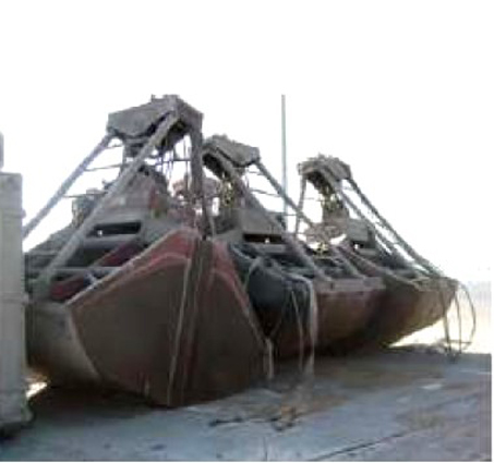 2 units of rail mounted four rope grab crane