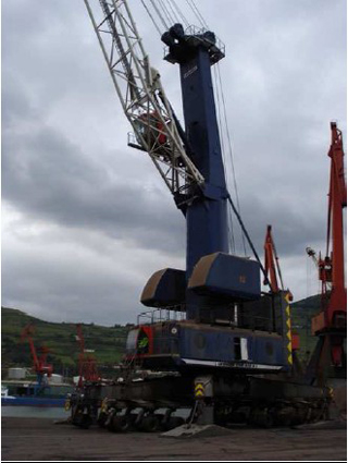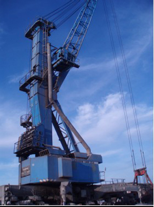 Type DWK, year of construction: 1993, gantry span 8,5m, capacity and outreach 16 tns - 35 m, Grab operation – Lifting- / Lowering speed 110m/min, slewing speed 1 rpm, gantry travelling speed 30m/min, weight 250t, power supply 380 V / 50 Hz, fully operative, very good general conditions, immediate delivery as is-where is, location: Spain.